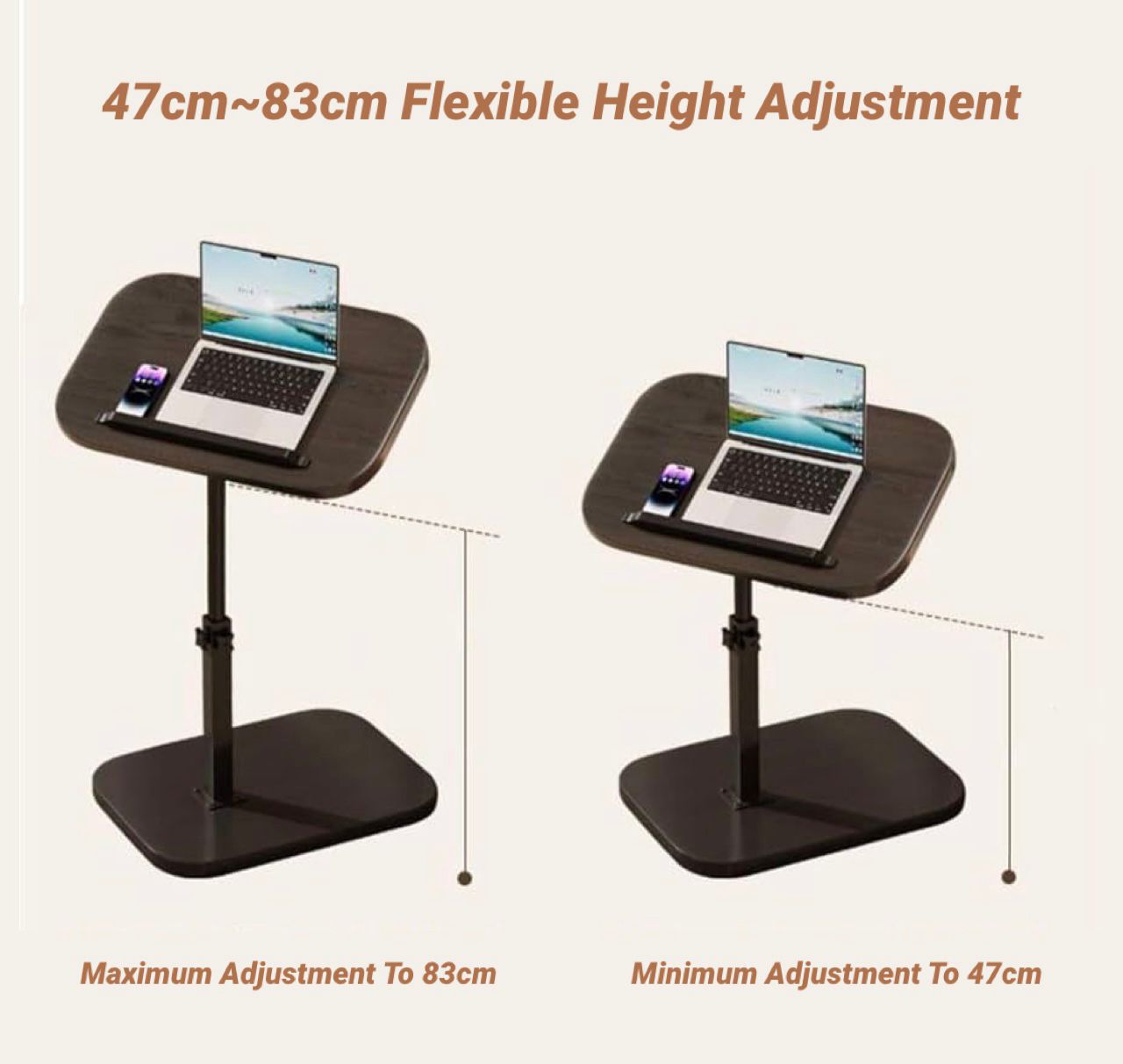 The table features an adjustable height mechanism, allowing you to raise or lower the tabletop to suit different seating positions. This makes it suitable for working, reading, or eating while sitting on a couch or lying in bed.