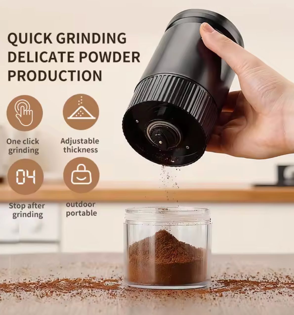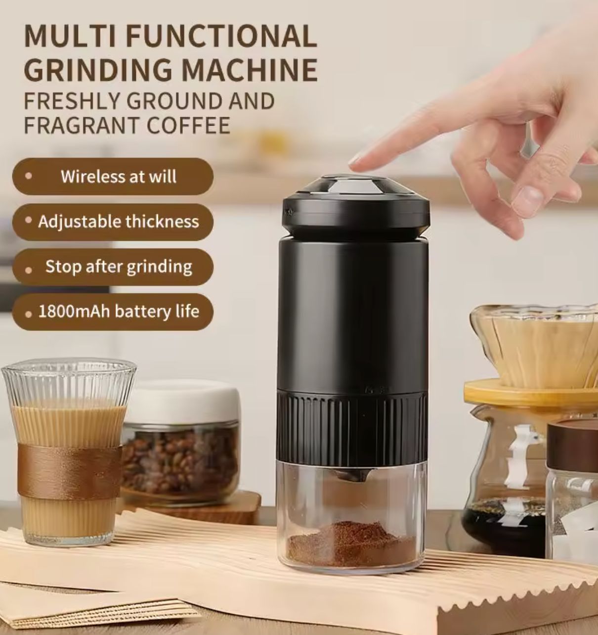 This multi-functional coffee grinder is designed for convenience and versatility, making it ideal for home or travel use. It features wireless operation, allowing you to grind coffee beans anywhere without being tethered to a power outlet. The adjustable thickness setting lets you choose the grind size, from coarse for French press to fine for espresso.