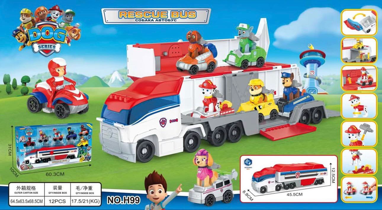 - Theme:Â The design and characters are inspired by rescue-themed animated shows, featuring colorful animal characters in uniforms.